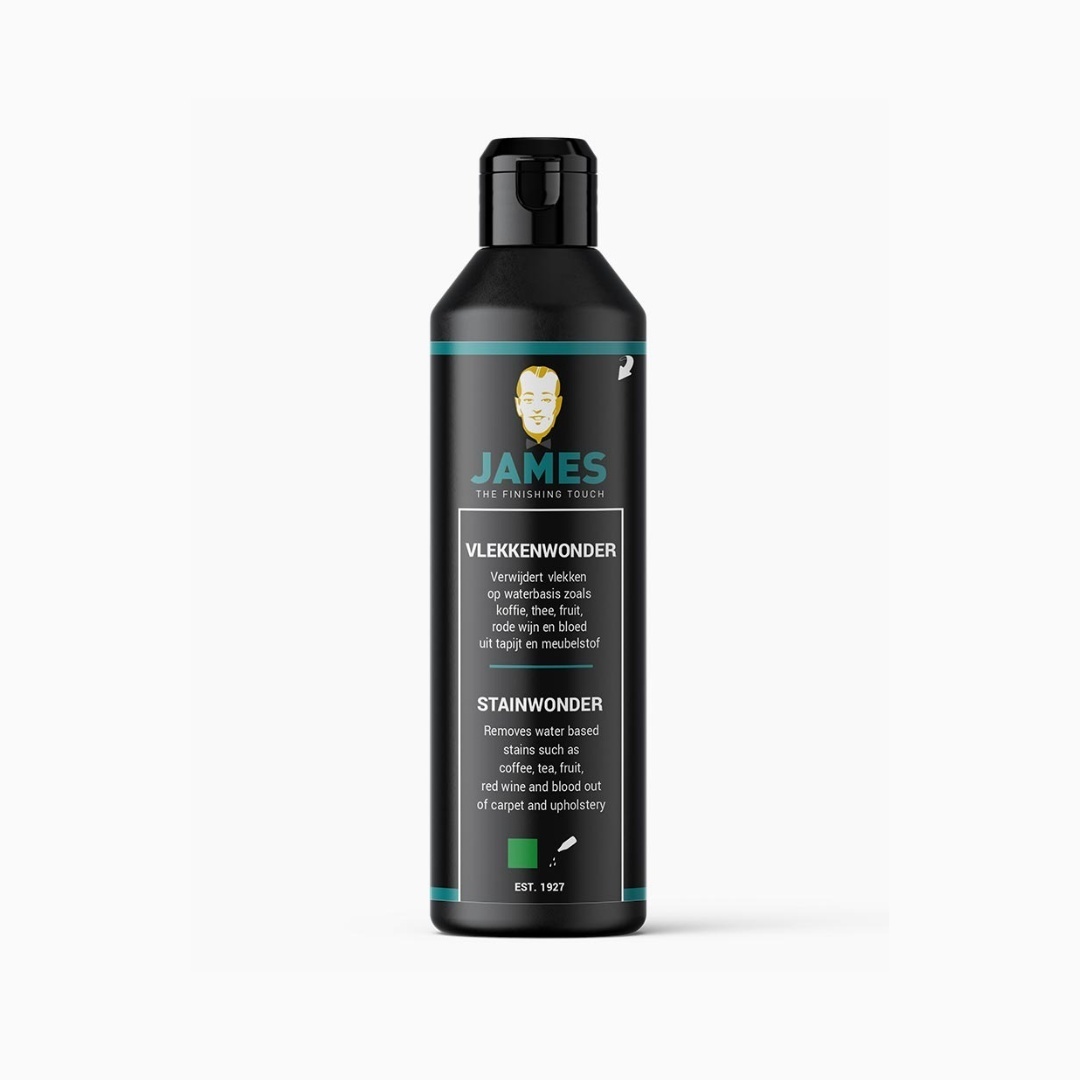 James Vlekkenwonder verwijdert moeiteloos o.a. koffie, thee, fruit, rode wijn en bloed uit tapijt en meubelstof. Geschikt voor alle materialen, zowel natuurlijke (zoals wol) als synthetische materialen. Ook oude vlekken zijn vaak nog gemakkelijk te verwijderen; zelfs een oude rode wijn vlek!